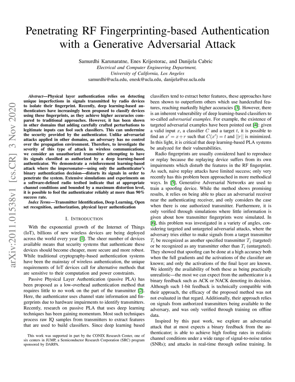 Penetrating RF Fingerprinting-based Authentication with a Generative