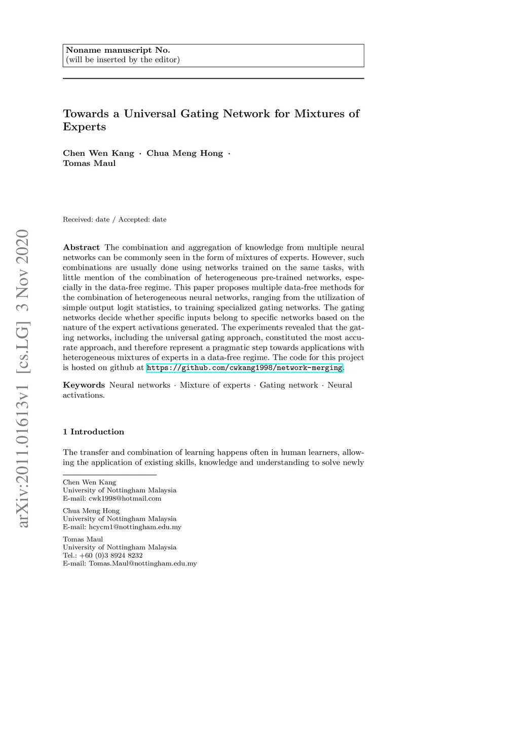 Towards a Universal Gating Network for Mixtures of Experts