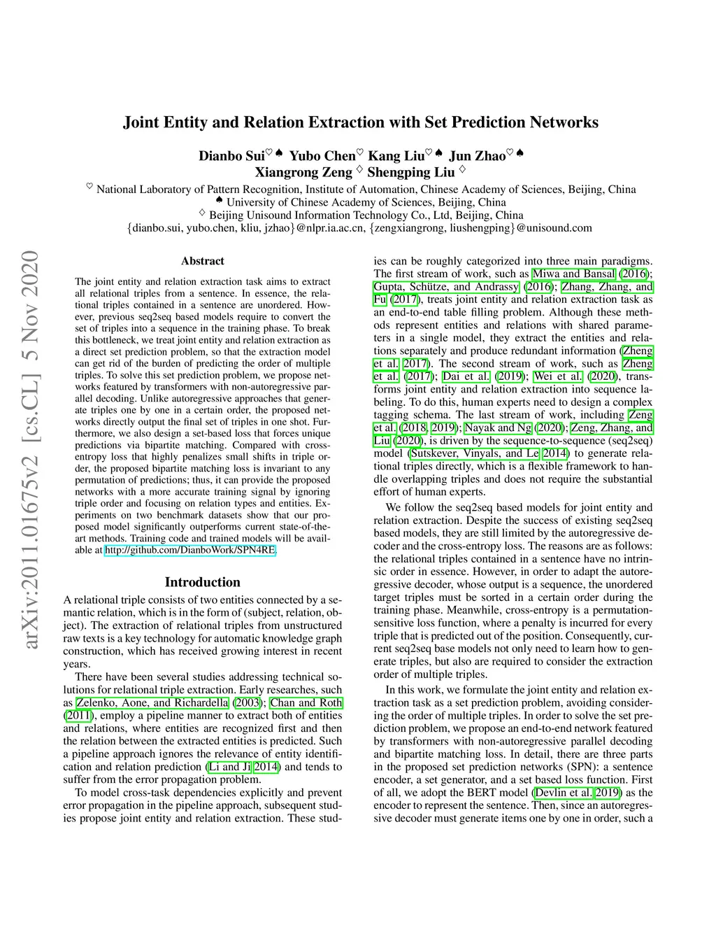 Joint Entity and Relation Extraction with Set Prediction Networks