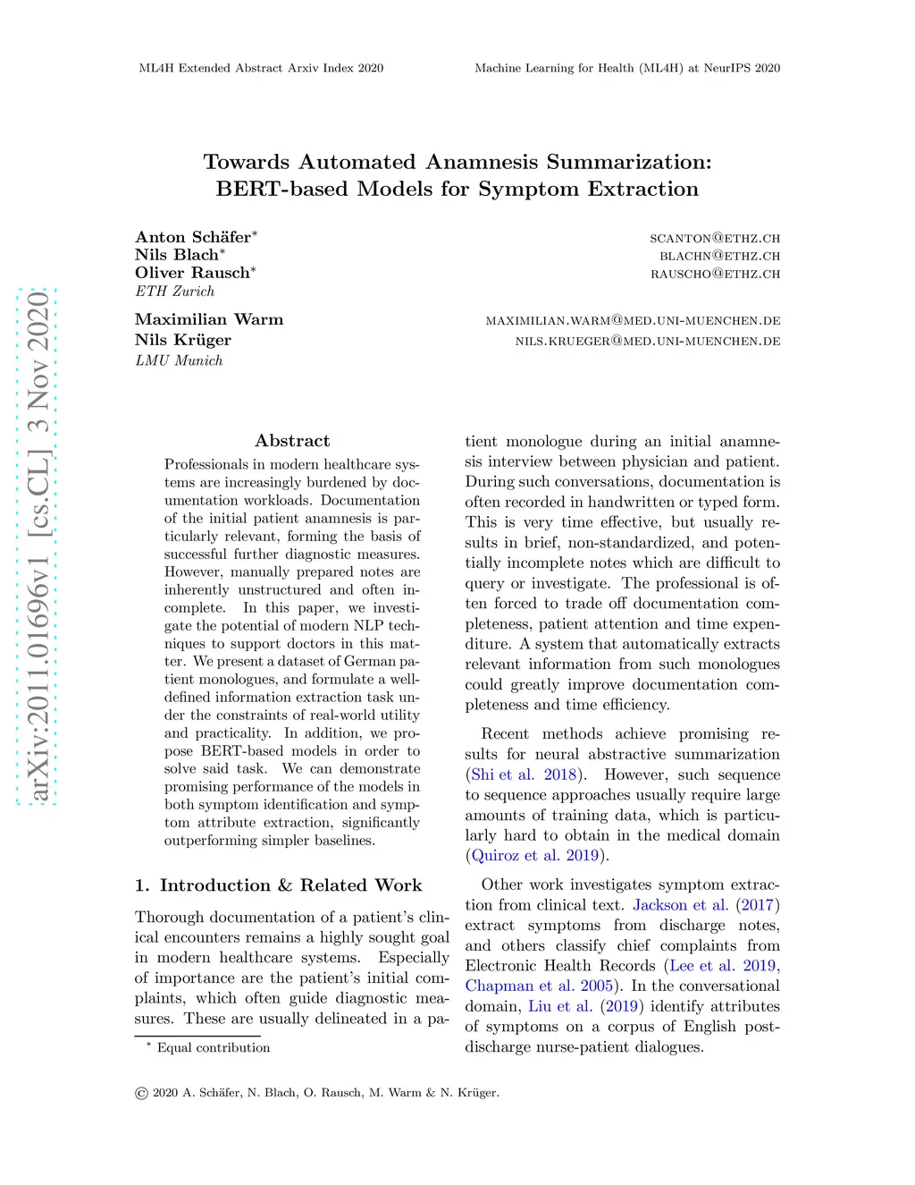 Towards Automated Anamnesis Summarization: BERT-based Models for Symptom