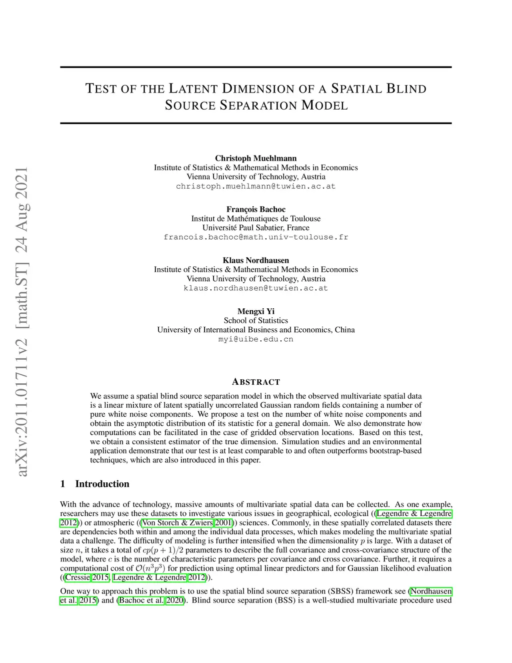 Test of the Latent Dimension of a Spatial Blind Source Separation Model