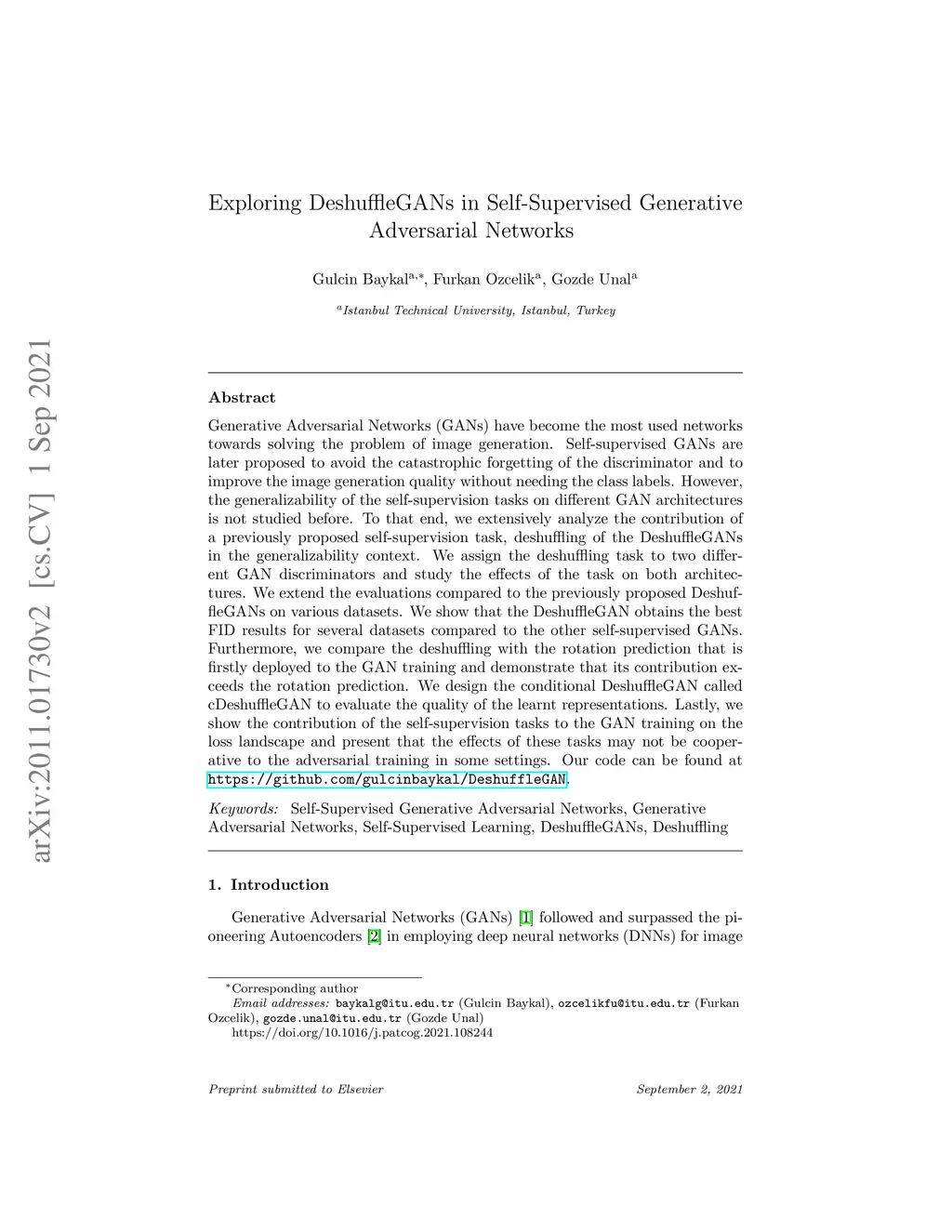 Exploring DeshuffleGANs in Self-Supervised Generative Adversarial