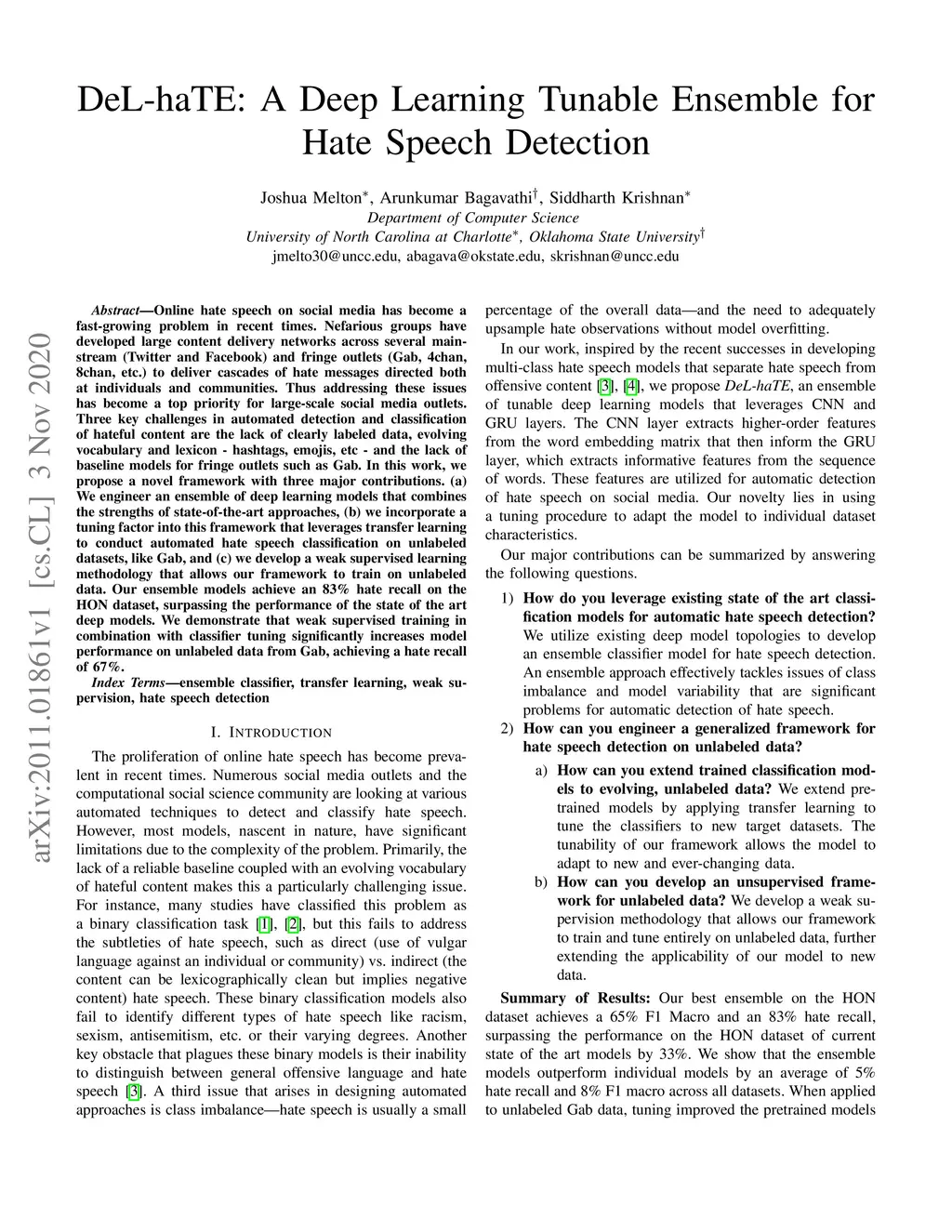 DeL-haTE: A Deep Learning Tunable Ensemble for Hate Speech Detection