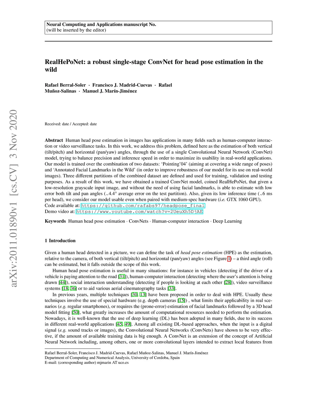 RealHePoNet: a robust single-stage ConvNet for head pose estimation in