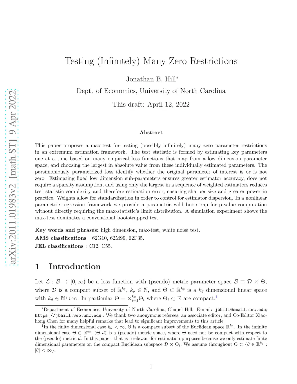 This paper proposes a max-test for testing (possibly infinitely) many zero parameter restrictions in an extremum estimation framework. The test statistic is formed by estimating key parameters one at a time based on many empirical loss functions that map from a low dimension parameter space, and choosing the largest in absolute value from these individually estimated parameters. The parsimoniously parametrized loss identify whether the original parameter of interest is or is not zero. Estimating fixed low dimension sub-parameters ensures greater estimator accuracy, does not require a sparsity assumption, and using only the largest in a sequence of weighted estimators reduces test statistic complexity and therefore estimation error, ensuring sharper size and greater power in practice. Weights allow for standardization in order to control for estimator dispersion. In a nonlinear parametric regression framework we provide a parametric wild bootstrap for p-value computation without directly requiring the max-statistic's limit distribution. A simulation experiment shows the max-test dominates a conventional bootstrapped test.