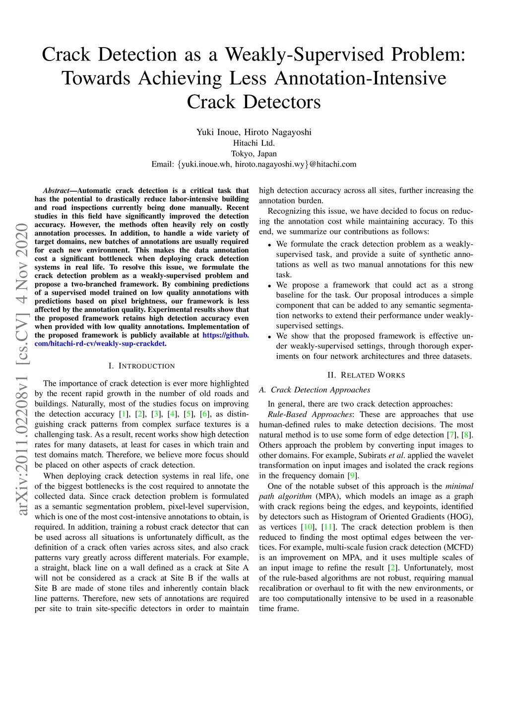 Crack Detection as a Weakly-Supervised Problem: Towards Achieving Less