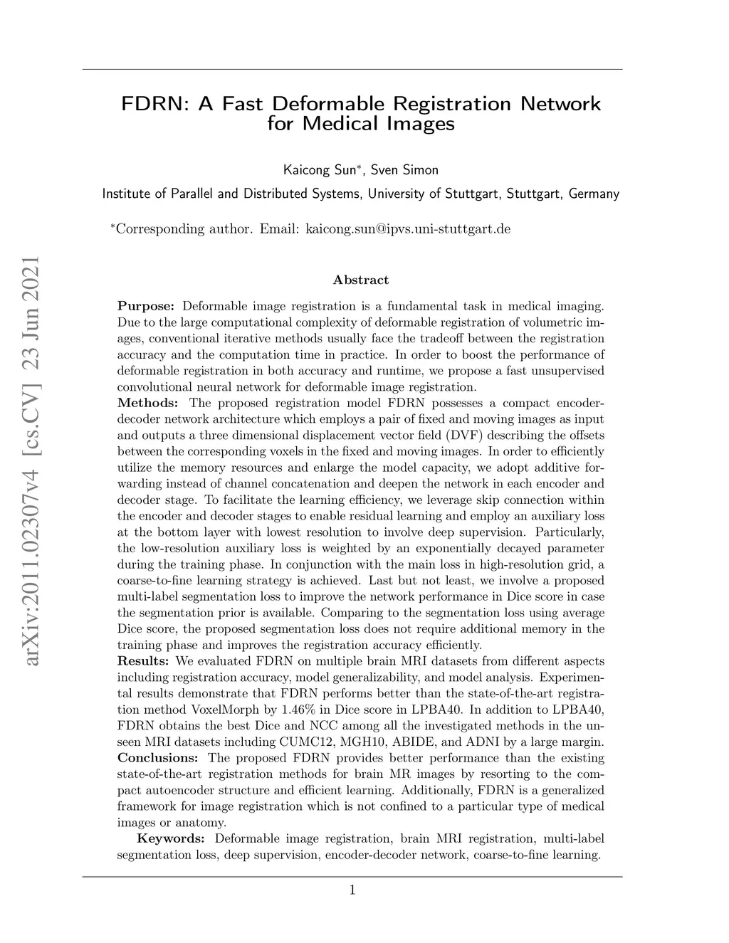 FDRN: A Fast Deformable Registration Network for Medical Images