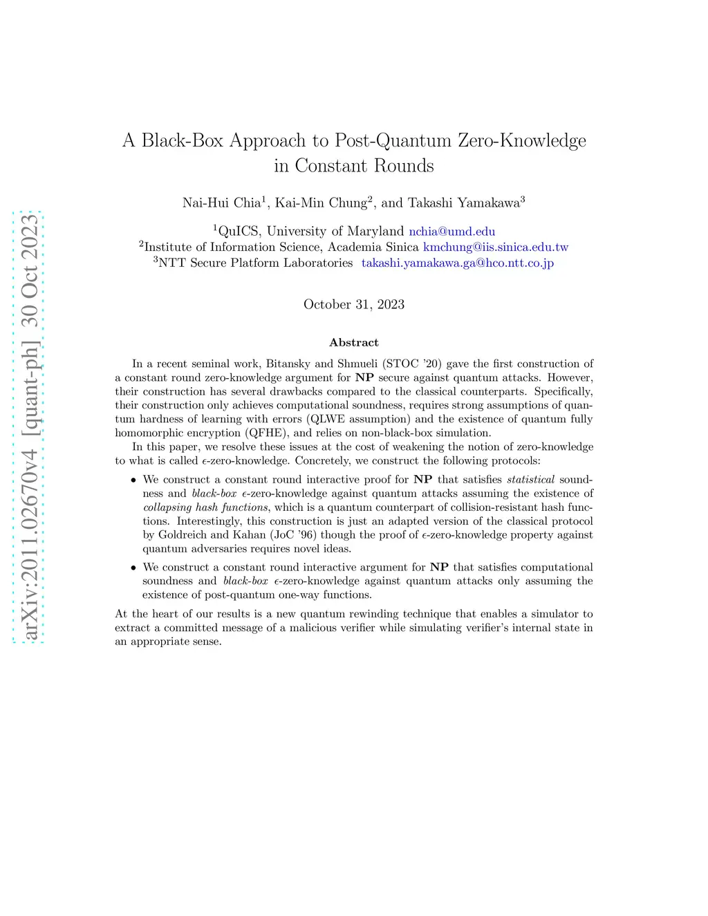 In a recent seminal work, Bitansky and Shmueli (STOC '20) gave the first construction of a constant round zero-knowledge argument for NP secure against quantum attacks. However, their construction has several drawbacks compared to the classical counterparts. Specifically, their construction only achieves computational soundness, requires strong assumptions of quantum hardness of learning with errors (QLWE assumption) and the existence of quantum fully homomorphic encryption (QFHE), and relies on non-black-box simulation. In this paper, we resolve these issues at the cost of weakening the notion of zero-knowledge to what is called -zero-knowledge. Concretely, we construct the following protocols: - We construct a constant round interactive proof for NP that satisfies statistical soundness and black-box -zero-knowledge against quantum attacks assuming the existence of collapsing hash functions, which is a quantum counterpart of collision-resistant hash functions. Interestingly, this construction is just an adapted version of the classical protocol by Goldreich and Kahan (JoC '96) though the proof of -zero-knowledge property against quantum adversaries requires novel ideas. - We construct a constant round interactive argument for NP that satisfies computational soundness and black-box -zero-knowledge against quantum attacks only assuming the existence of post-quantum one-way functions. At the heart of our results is a new quantum rewinding technique that enables a simulator to extract a committed message of a malicious verifier while simulating verifier's internal state in an appropriate sense.