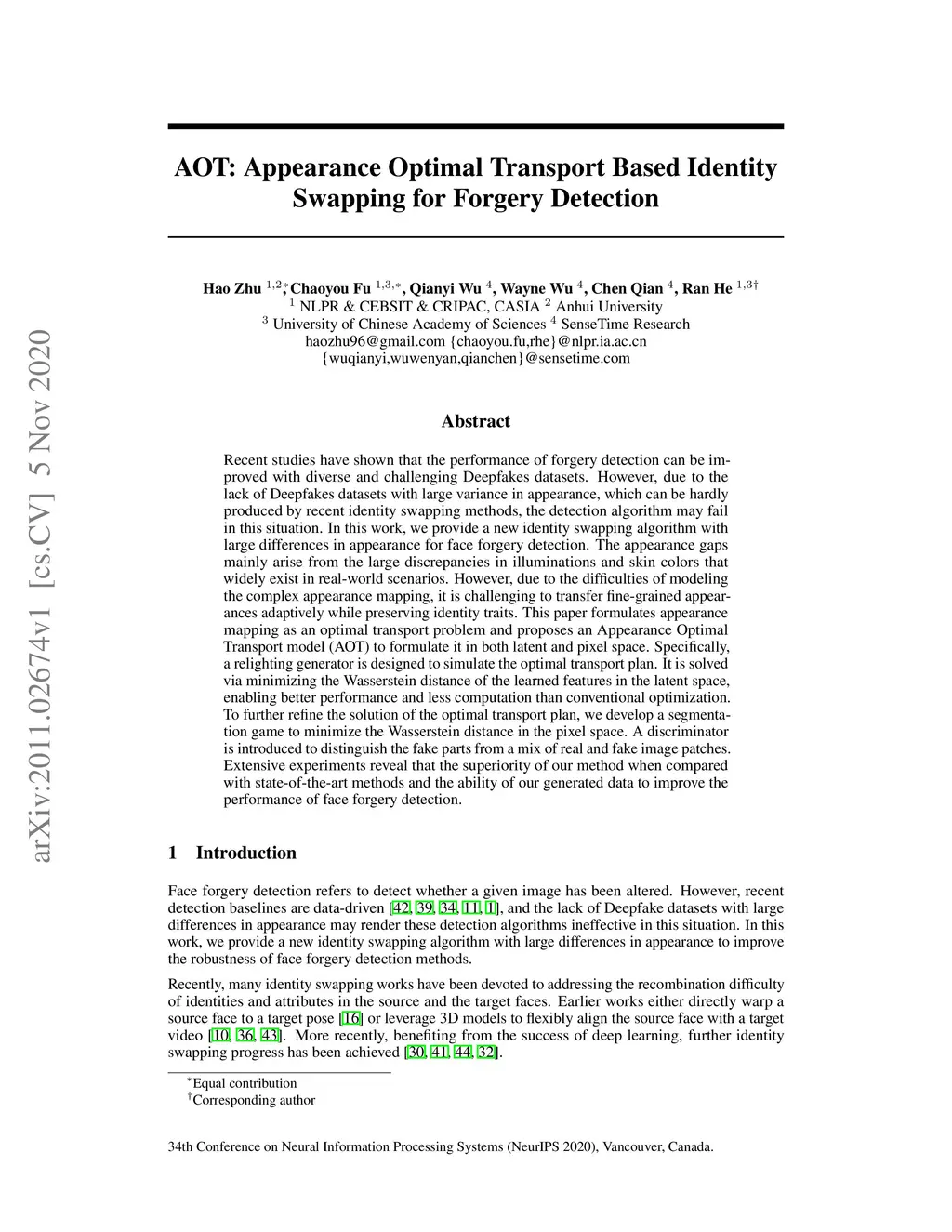 AOT: Appearance Optimal Transport Based Identity Swapping for Forgery