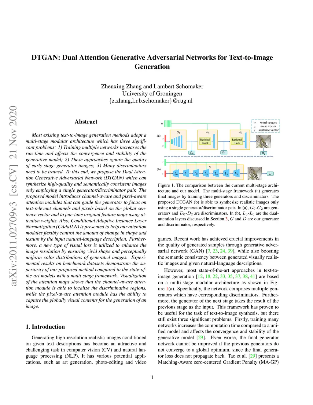 DTGAN: Dual Attention Generative Adversarial Networks for Text-to-Image