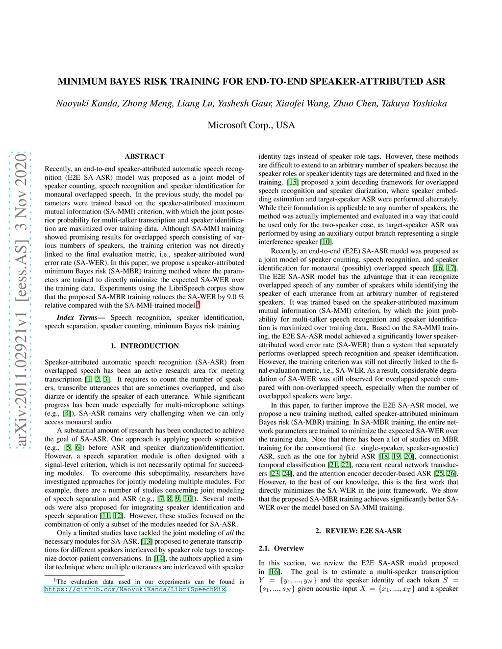 Minimum Bayes Risk Training for End-to-End Speaker-Attributed ASR