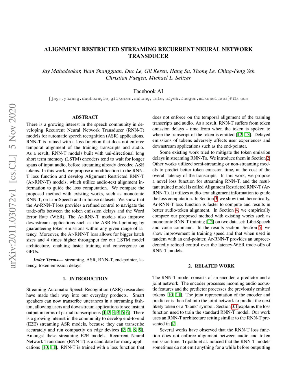 Alignment Restricted Streaming Recurrent Neural Network Transducer