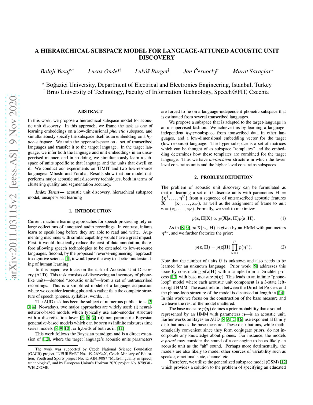 A Hierarchical Subspace Model for Language-Attuned Acoustic Unit