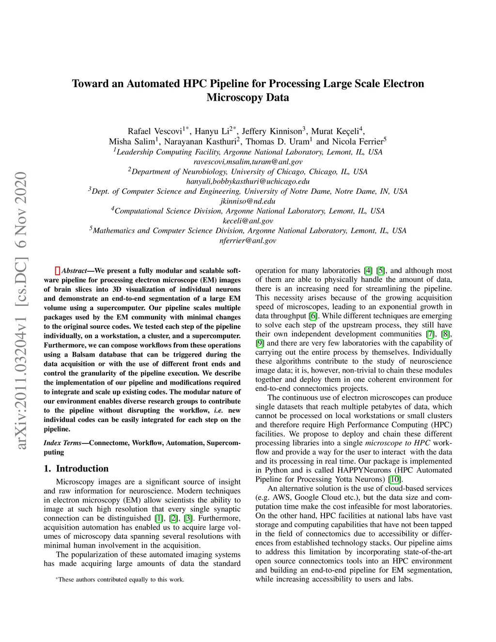 Toward an Automated HPC Pipeline for Processing Large Scale Electron