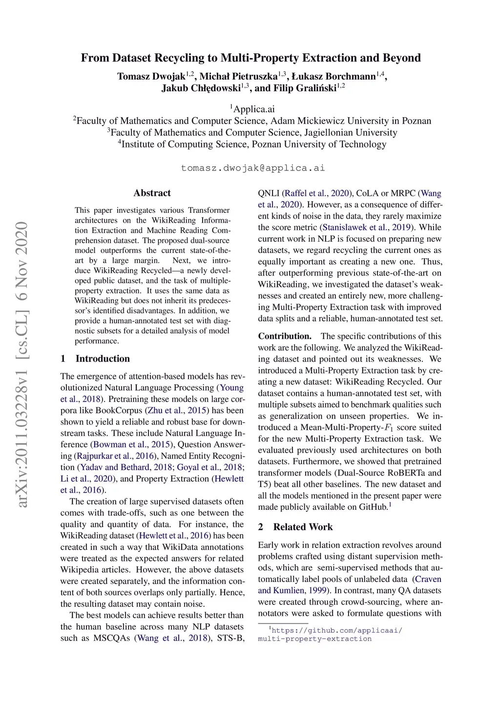 From Dataset Recycling to Multi-Property Extraction and Beyond