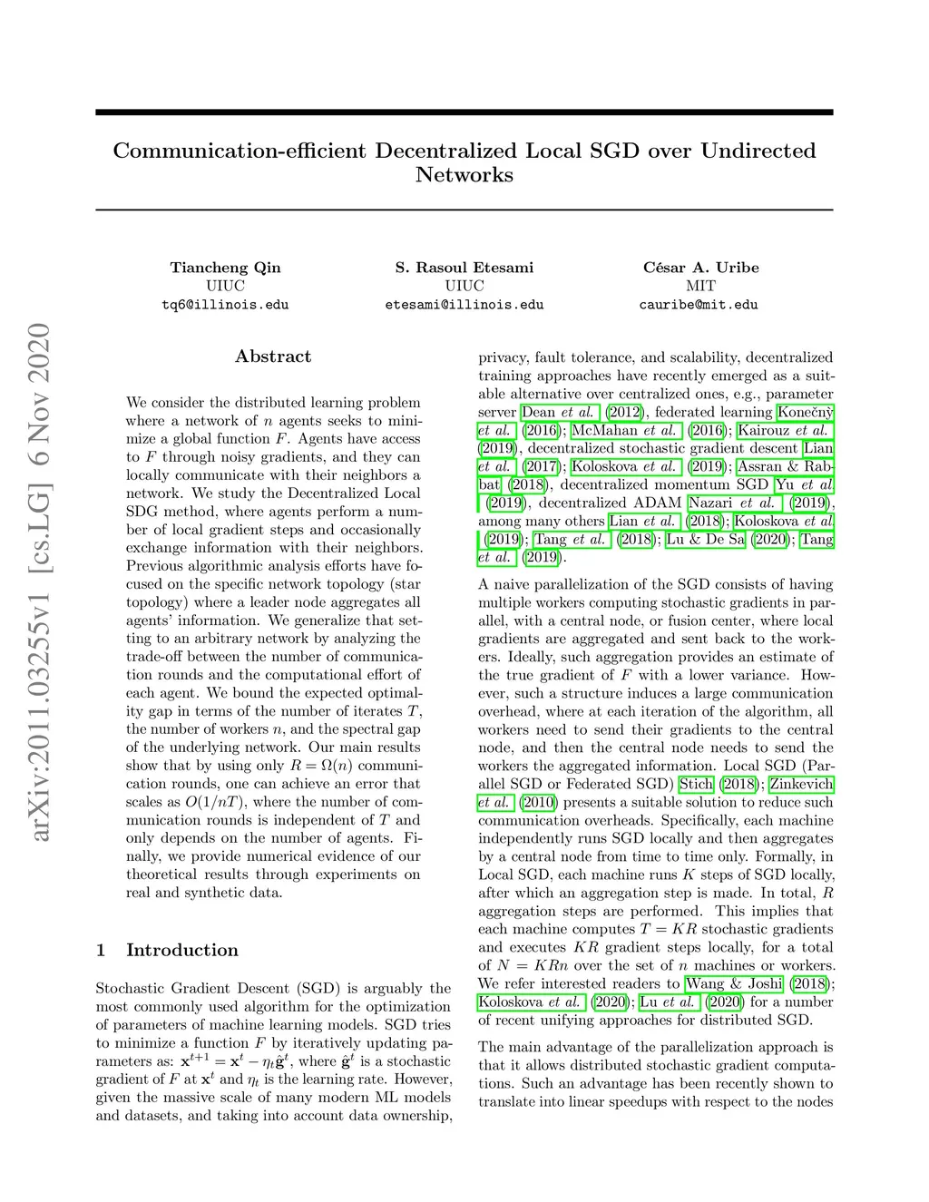 Communication-efficient Decentralized Local SGD over Undirected Networks