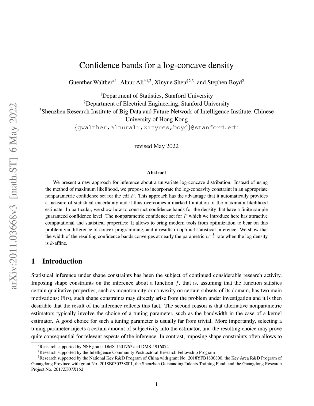We present a new approach for inference about a log-concave distribution: Instead of using the method of maximum likelihood, we propose to incorporate the log-concavity constraint in an appropriate nonparametric confidence set for the cdf . This approach has the advantage that it automatically provides a measure of statistical uncertainty and it thus overcomes a marked limitation of the maximum likelihood estimate. In particular, we show how to construct confidence bands for the density that have a finite sample guaranteed confidence level. The nonparametric confidence set for which we introduce here has attractive computational and statistical properties: It allows to bring modern tools from optimization to bear on this problem via difference of convex programming, and it results in optimal statistical inference. We show that the width of the resulting confidence bands converges at nearly the parametric rate when the log density is -affine.