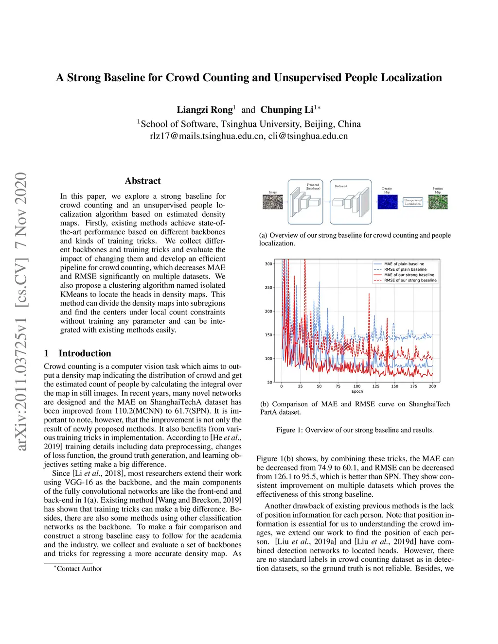A Strong Baseline for Crowd Counting and Unsupervised People