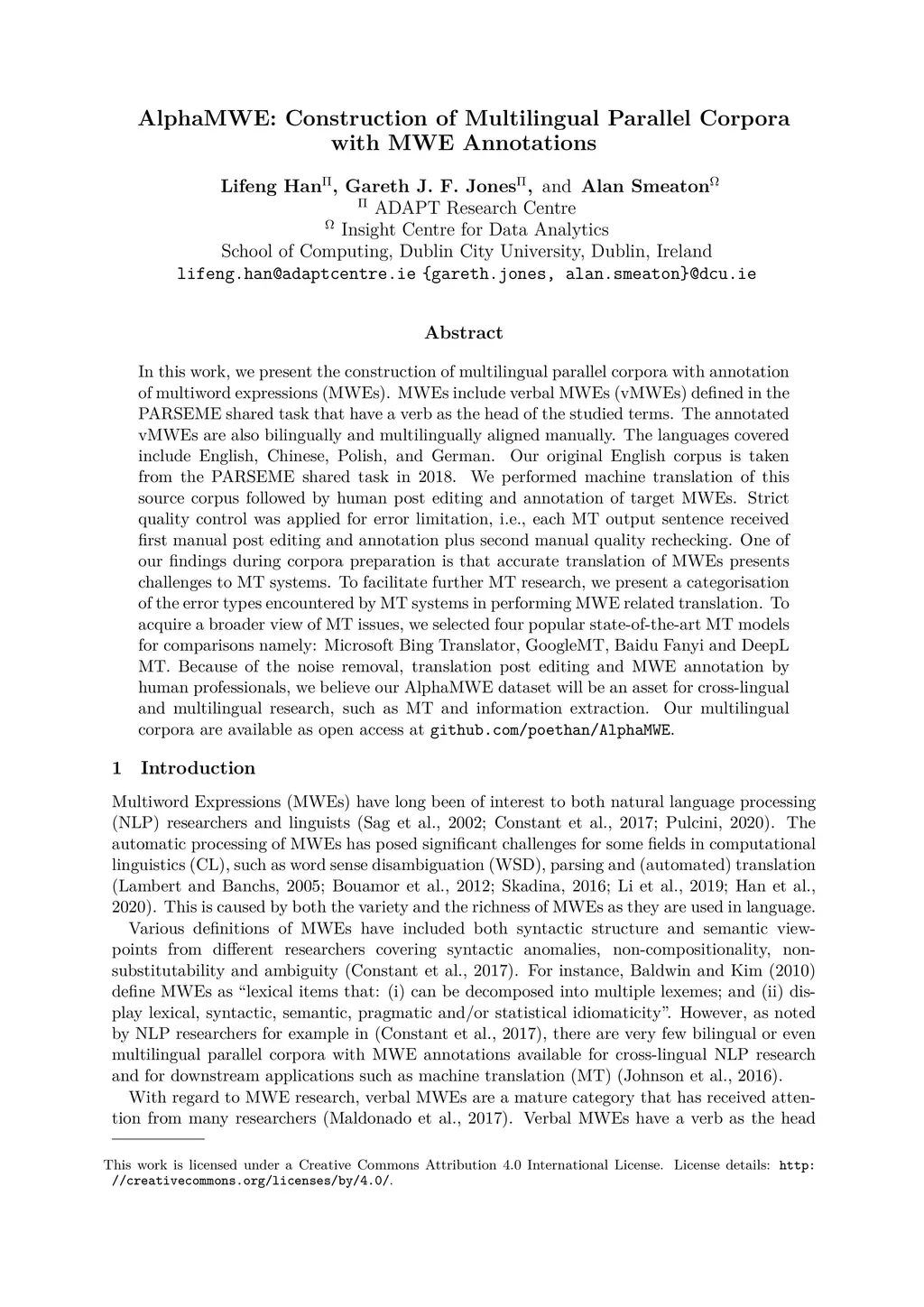 In this work, we introduce the construction of a machine translation (MT) assisted and human-in-the-loop multilingual parallel corpus with annotations of multi-word expressions (MWEs), named AlphaMWE. The MWEs include verbal MWEs (vMWEs) defined in the PARSEME shared task that have a verb as the head of the studied terms. The annotated vMWEs are also bilingually and multilingually aligned manually. The languages covered include Arabic, Chinese, English, German, Italian, and Polish, of which, the Arabic corpus includes both standard and dialectal variations from Egypt and Tunisia. Our original English corpus is extracted from the PARSEME shared task in 2018. We performed machine translation of this source corpus followed by human post-editing and annotation of target MWEs. Strict quality control was applied for error limitation, i.e., each MT output sentence received first manual post-editing and annotation plus a second manual quality rechecking till annotators' consensus is reached. One of our findings during corpora preparation is that accurate translation of MWEs presents challenges to MT systems, as reflected by the outcomes of human-in-the-loop metric HOPE. To facilitate further MT research, we present a categorisation of the error types encountered by MT systems in performing MWE-related translation. To acquire a broader view of MT issues, we selected four popular state-of-the-art MT systems for comparison, namely Microsoft Bing Translator, GoogleMT, Baidu Fanyi, and DeepL MT. Because of the noise removal, translation post-editing, and MWE annotation by human professionals, we believe the AlphaMWE data set will be an asset for both monolingual and cross-lingual research, such as multi-word term lexicography, MT, and information extraction.