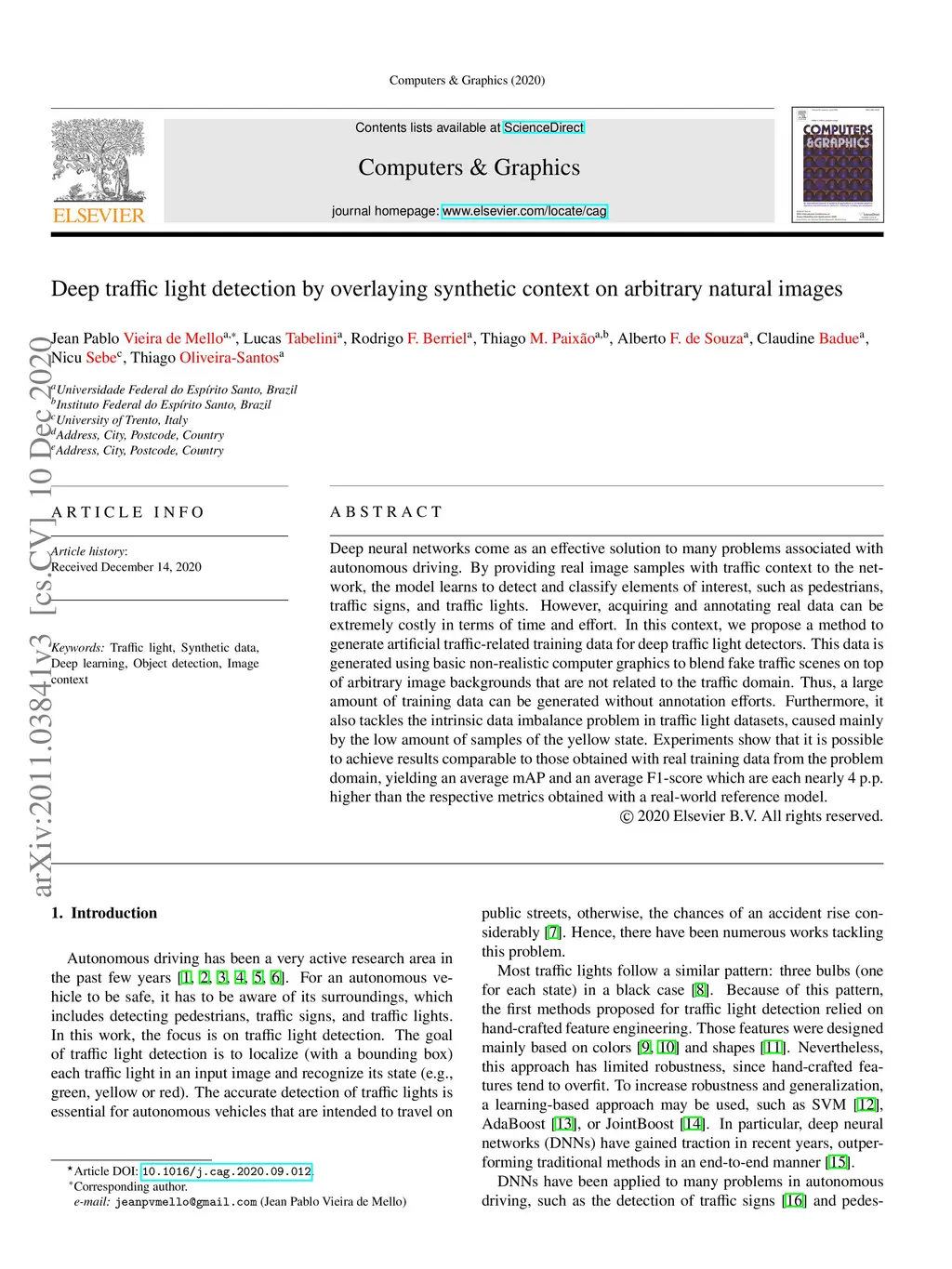 Deep neural networks come as an effective solution to many problems associated with autonomous driving. By providing real image samples with traffic context to the network, the model learns to detect and classify elements of interest, such as pedestrians, traffic signs, and traffic lights. However, acquiring and annotating real data can be extremely costly in terms of time and effort. In this context, we propose a method to generate artificial traffic-related training data for deep traffic light detectors. This data is generated using basic non-realistic computer graphics to blend fake traffic scenes on top of arbitrary image backgrounds that are not related to the traffic domain. Thus, a large amount of training data can be generated without annotation efforts. Furthermore, it also tackles the intrinsic data imbalance problem in traffic light datasets, caused mainly by the low amount of samples of the yellow state. Experiments show that it is possible to achieve results comparable to those obtained with real training data from the problem domain, yielding an average mAP and an average F1-score which are each nearly 4 p.p. higher than the respective metrics obtained with a real-world reference model.