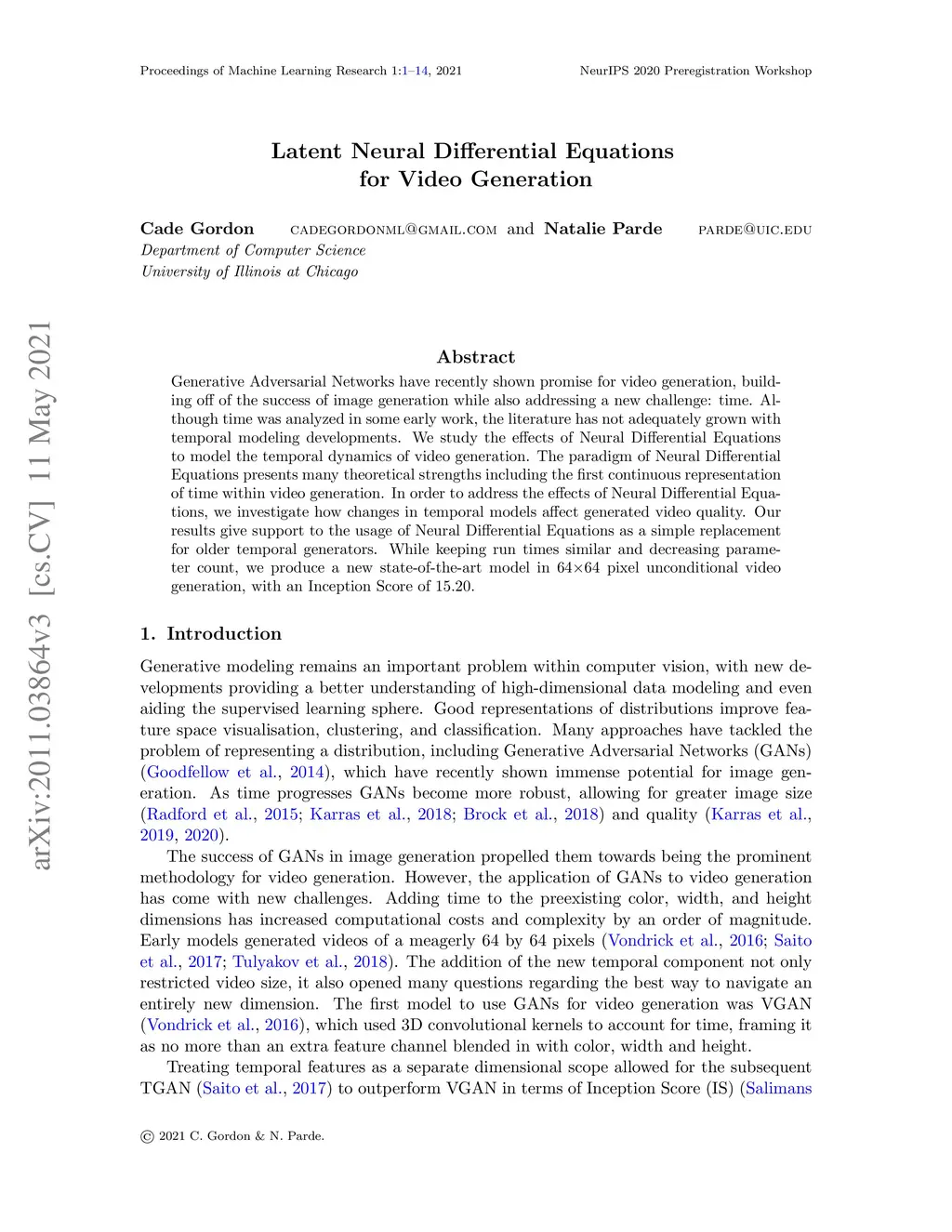 Latent Neural Differential Equations for Video Generation