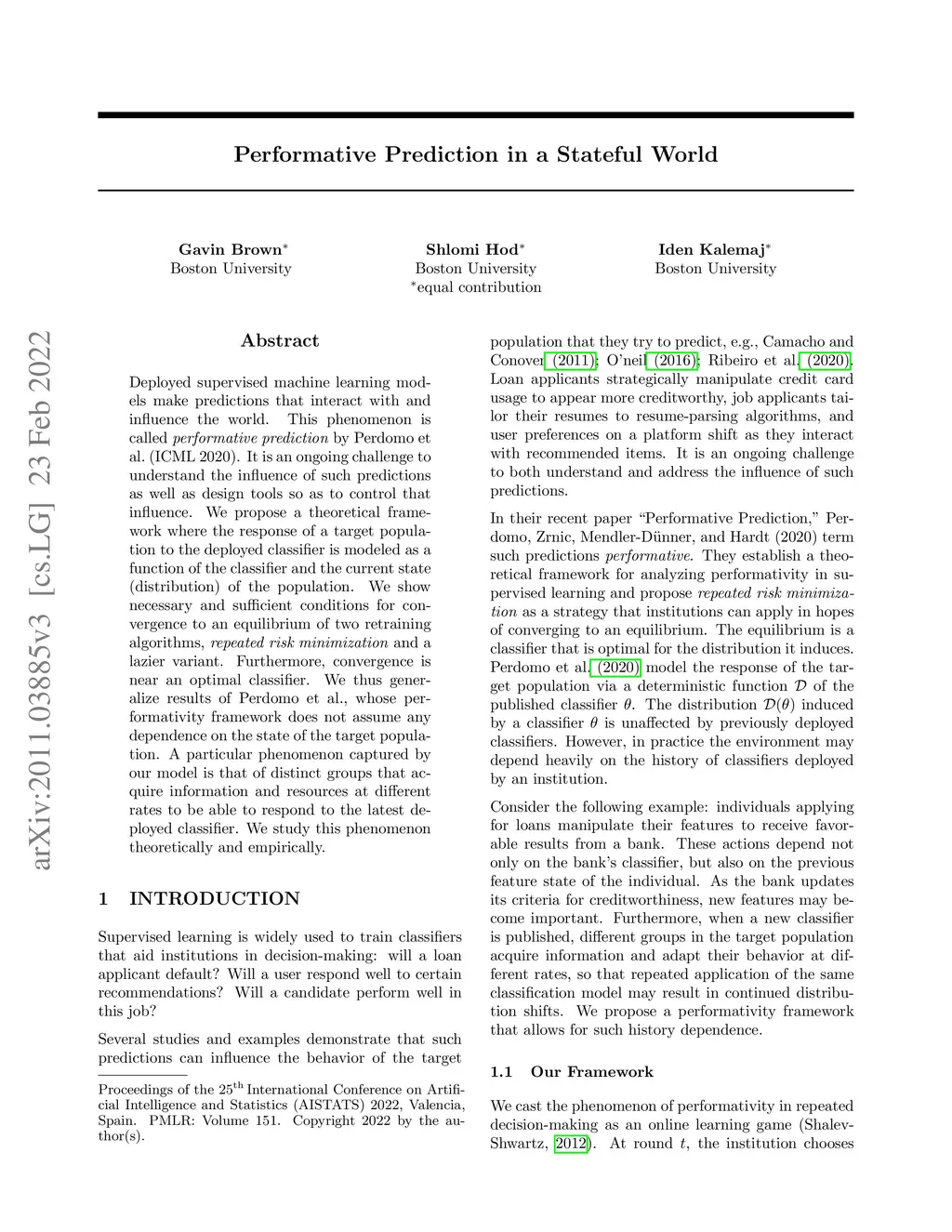 Deployed supervised machine learning models make predictions that interact with and influence the world. This phenomenon is called performative prediction by Perdomo et al. (ICML 2020). It is an ongoing challenge to understand the influence of such predictions as well as design tools so as to control that influence. We propose a theoretical framework where the response of a target population to the deployed classifier is modeled as a function of the classifier and the current state (distribution) of the population. We show necessary and sufficient conditions for convergence to an equilibrium of two retraining algorithms, repeated risk minimization and a lazier variant. Furthermore, convergence is near an optimal classifier. We thus generalize results of Perdomo et al., whose performativity framework does not assume any dependence on the state of the target population. A particular phenomenon captured by our model is that of distinct groups that acquire information and resources at different rates to be able to respond to the latest deployed classifier. We study this phenomenon theoretically and empirically.