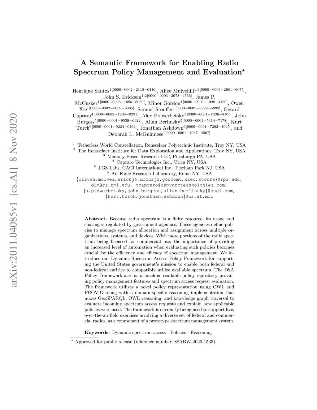 A Semantic Framework for Enabling Radio Spectrum Policy Management and