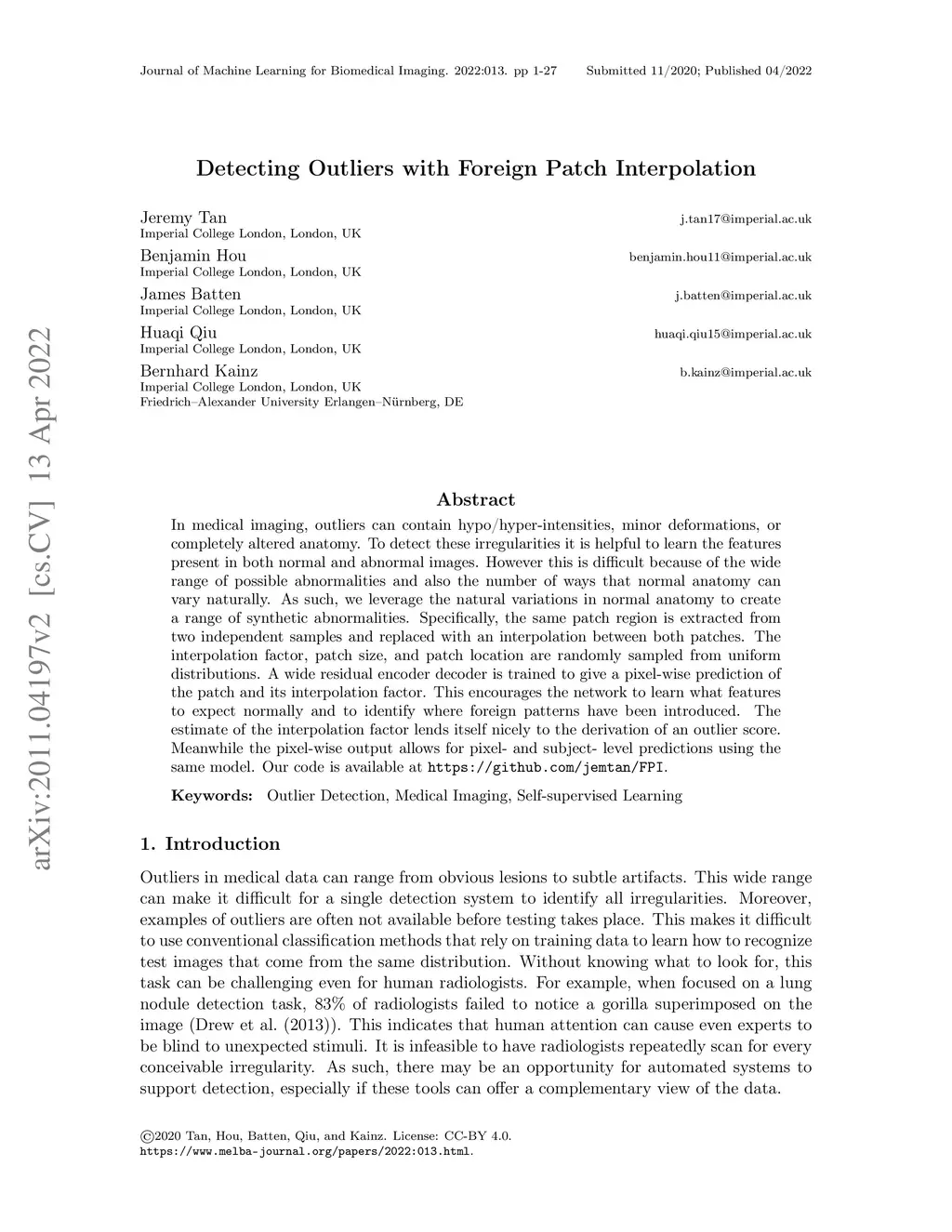 Detecting Outliers with Foreign Patch Interpolation