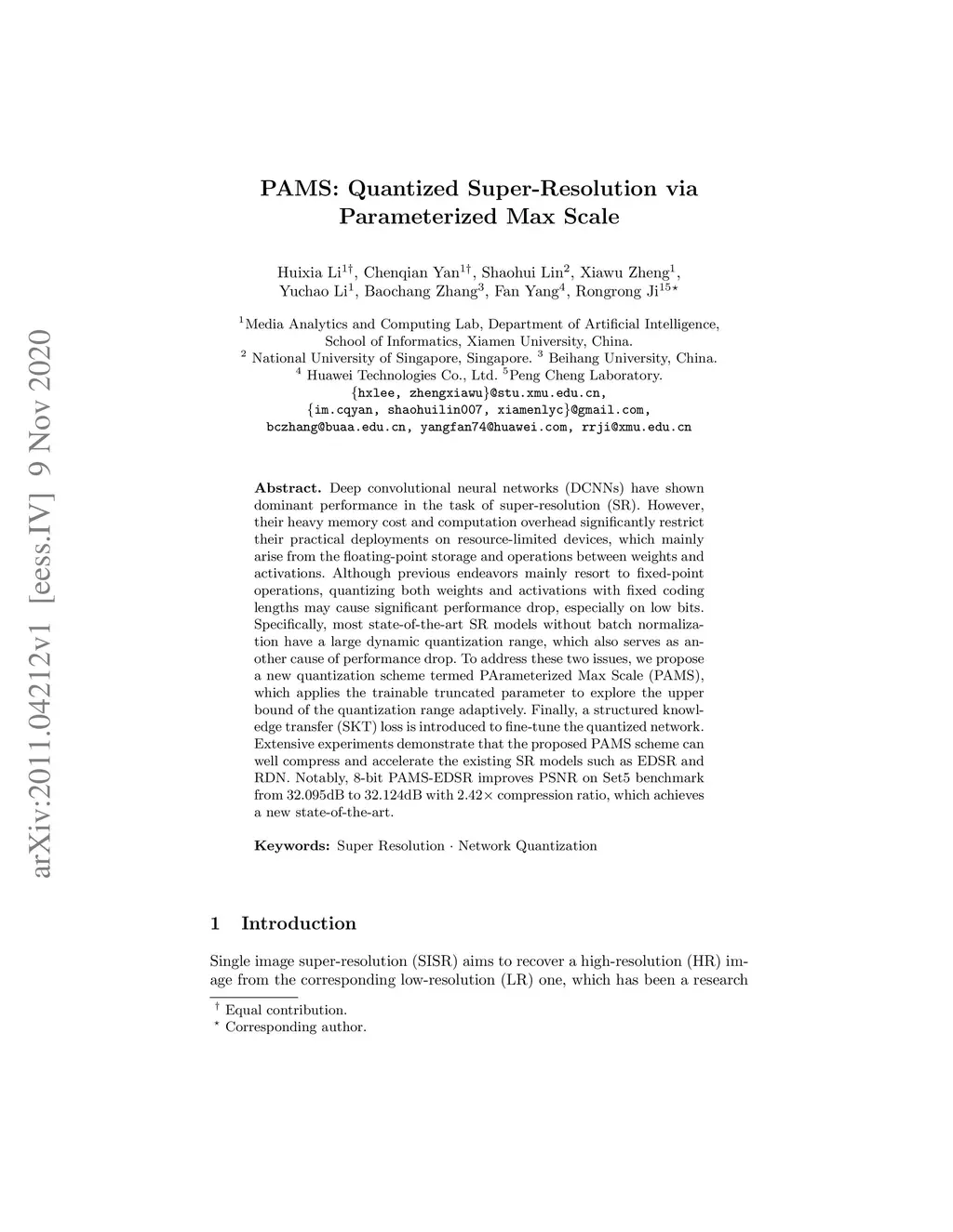 PAMS: Quantized Super-Resolution via Parameterized Max Scale