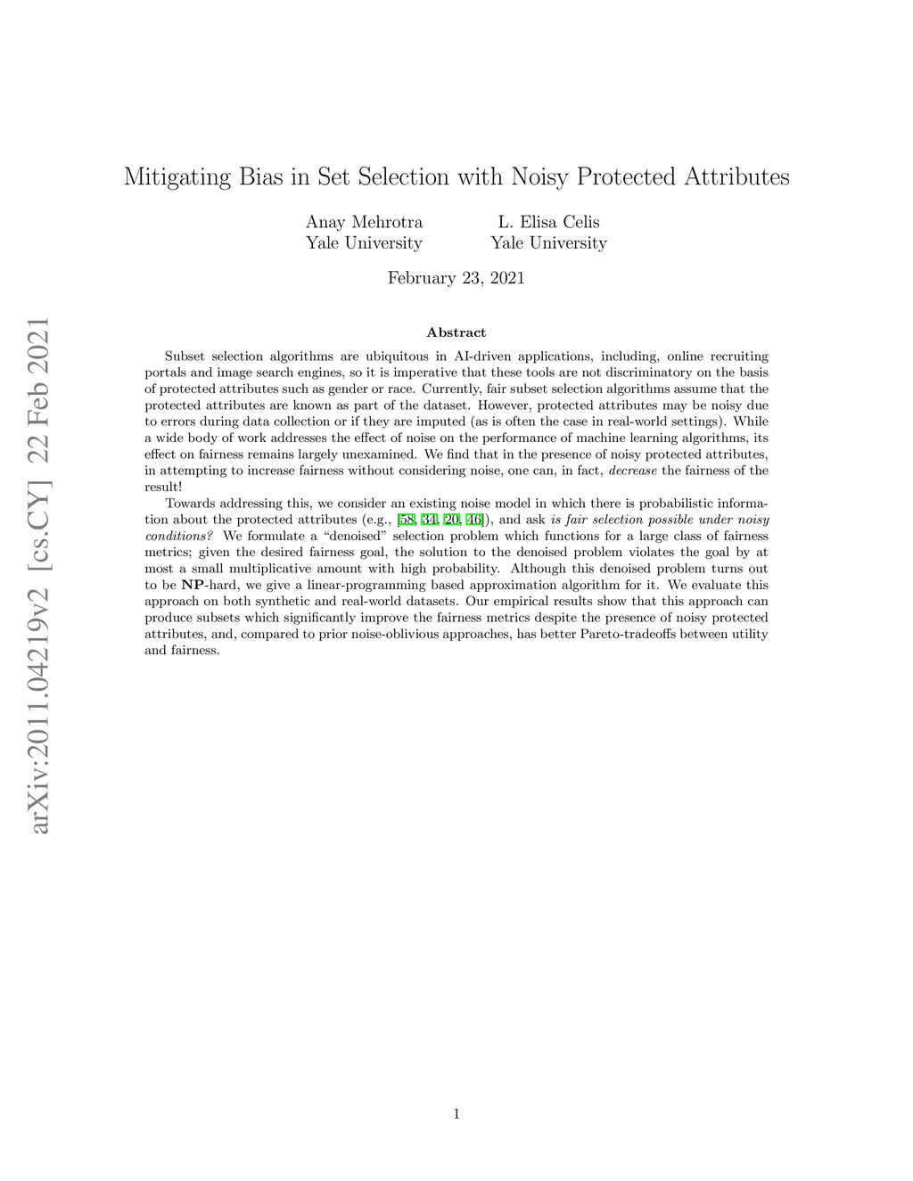 Mitigating Bias in Set Selection with Noisy Protected Attributes