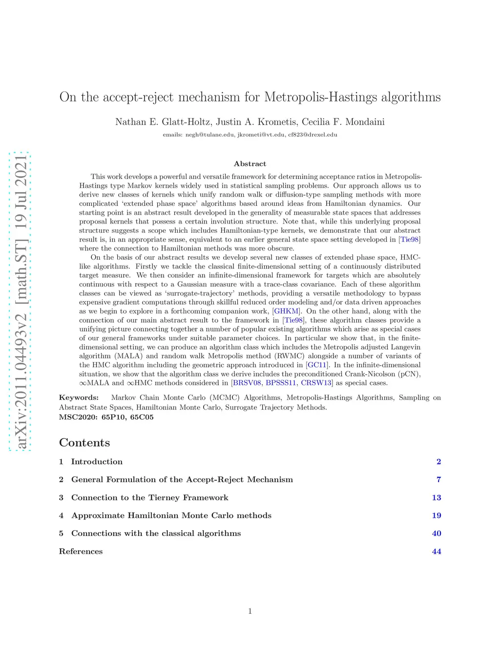 On the accept-reject mechanism for Metropolis-Hastings algorithms