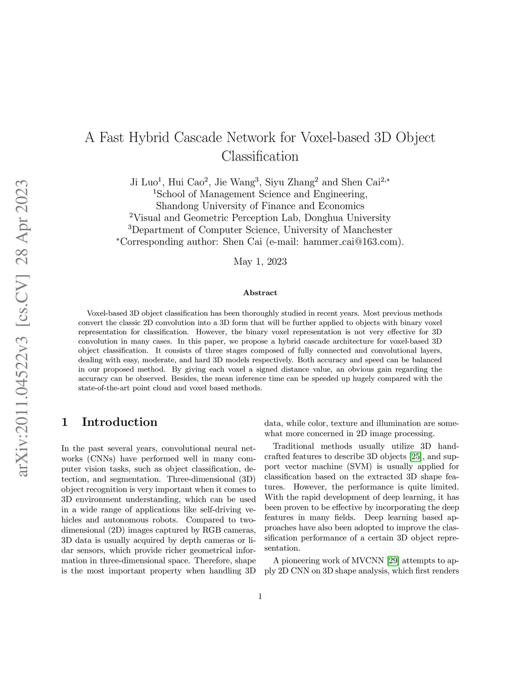 A Fast Hybrid Cascade Network for Voxel-based 3D Object Classification