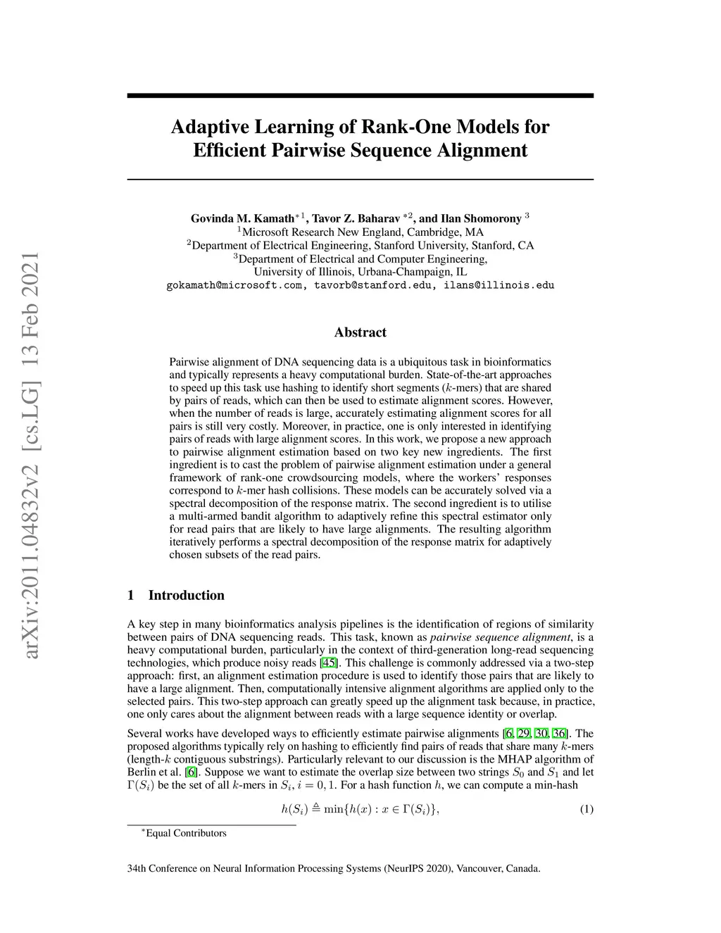 Adaptive Learning of Rank-One Models for Efficient Pairwise Sequence