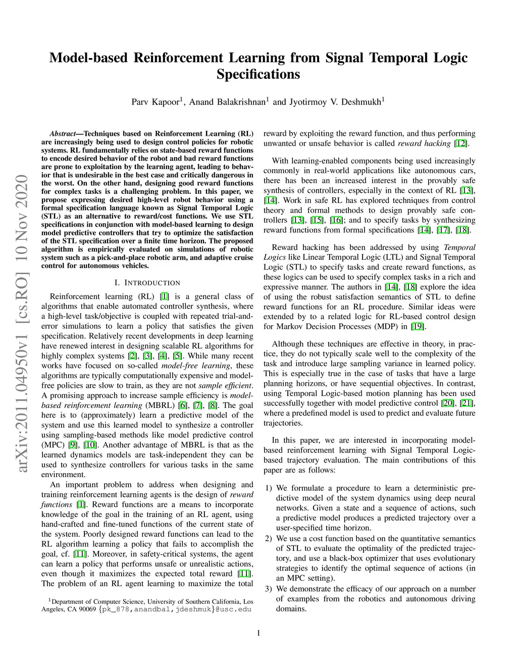 Model-based Reinforcement Learning from Signal Temporal Logic