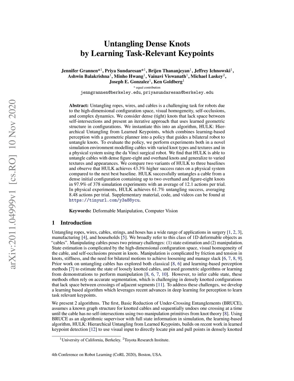 Untangling Dense Knots by Learning Task-Relevant Keypoints