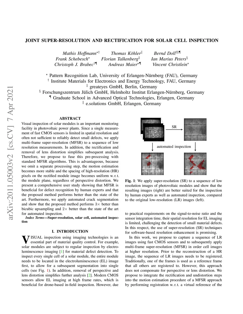 Joint Super-Resolution and Rectification for Solar Cell Inspection