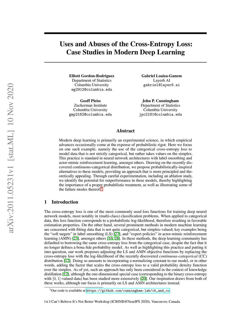 Modern deep learning is primarily an experimental science, in which empirical advances occasionally come at the expense of probabilistic rigor. Here we focus on one such example; namely the use of the categorical cross-entropy loss to model data that is not strictly categorical, but rather takes values on the simplex. This practice is standard in neural network architectures with label smoothing and actor-mimic reinforcement learning, amongst others. Drawing on the recently discovered continuous-categorical distribution, we propose probabilistically-inspired alternatives to these models, providing an approach that is more principled and theoretically appealing. Through careful experimentation, including an ablation study, we identify the potential for outperformance in these models, thereby highlighting the importance of a proper probabilistic treatment, as well as illustrating some of the failure modes thereof.