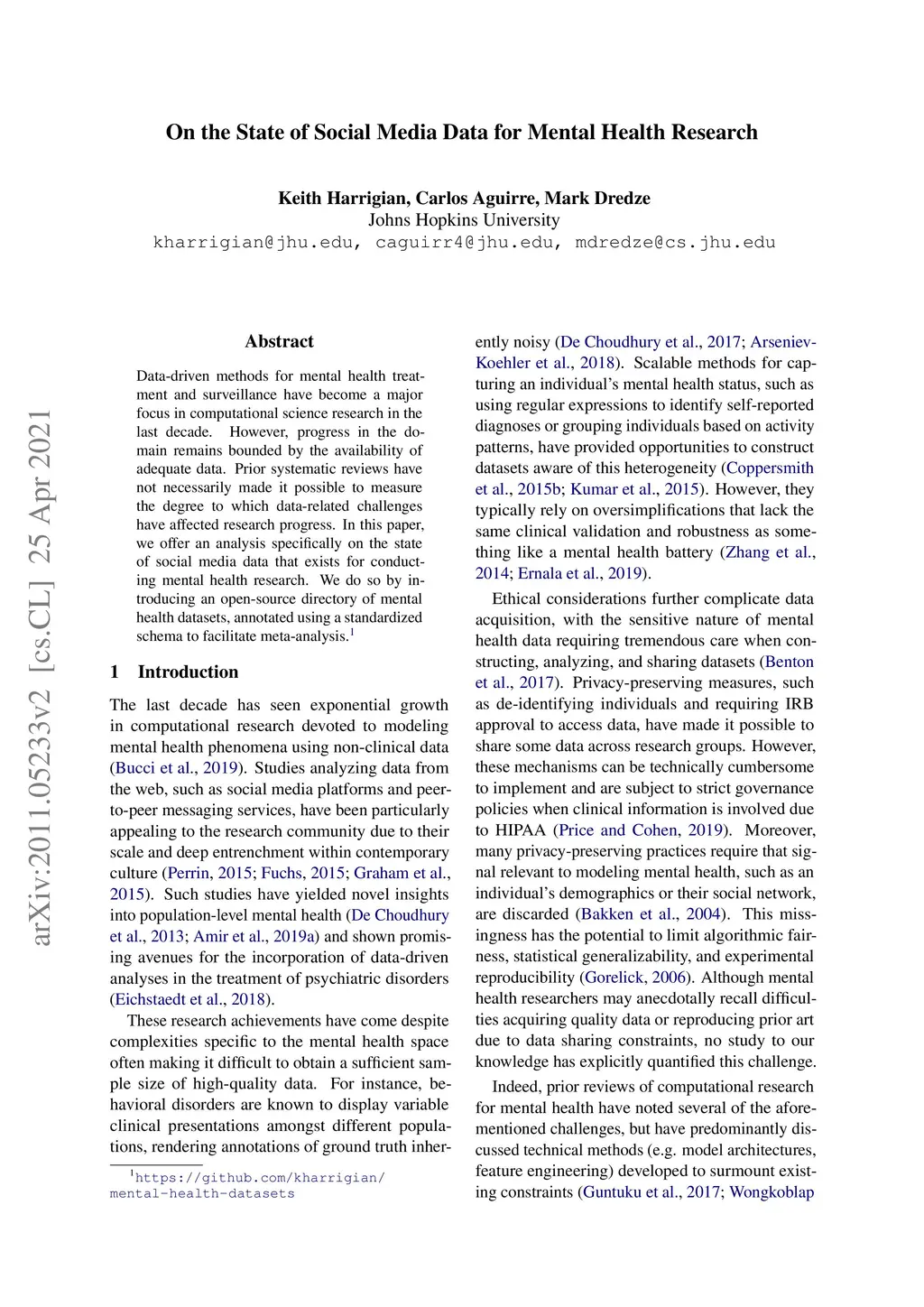 On the State of Social Media Data for Mental Health Research