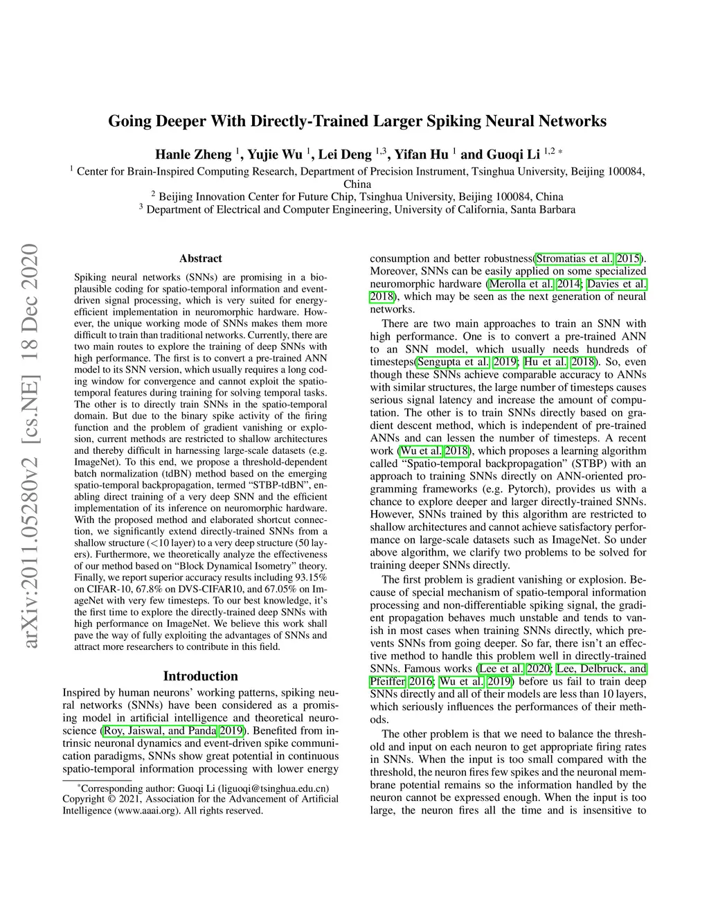 Going Deeper With Directly-Trained Larger Spiking Neural Networks