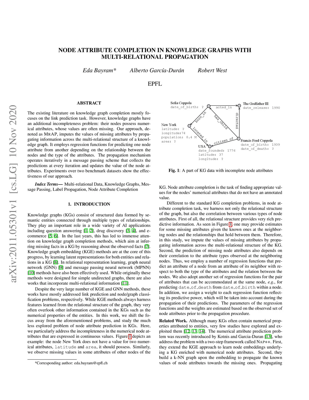 Node Attribute Completion in Knowledge Graphs with Multi-Relational