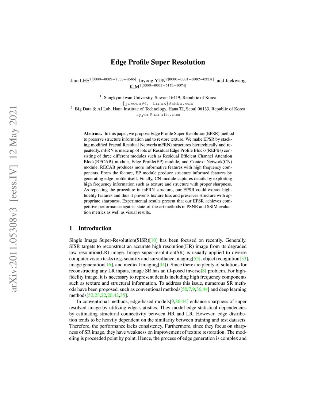 In this paper, we propose Edge Profile Super Resolution(EPSR) method to preserve structure information and to restore texture. We make EPSR by stacking modified Fractal Residual Network(mFRN) structures hierarchically and repeatedly. mFRN is made up of lots of Residual Edge Profile Blocks(REPBs) consisting of three different modules such as Residual Efficient Channel Attention Block(RECAB) module, Edge Profile(EP) module, and Context Network(CN) module. RECAB produces more informative features with high frequency components. From the feature, EP module produce structure informed features by generating edge profile itself. Finally, CN module captures details by exploiting high frequency information such as texture and structure with proper sharpness. As repeating the procedure in mFRN structure, our EPSR could extract high-fidelity features and thus it prevents texture loss and preserves structure with appropriate sharpness. Experimental results present that our EPSR achieves competitive performance against state-of-the-art methods in PSNR and SSIM evaluation metrics as well as visual results.