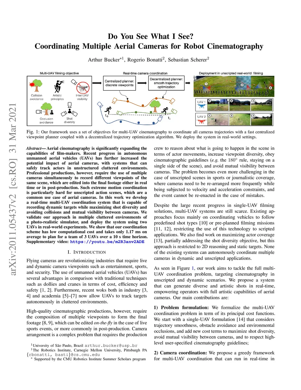 Do You See What I See? Coordinating Multiple Aerial Cameras for Robot