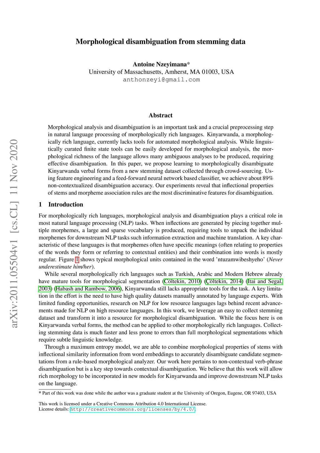 Morphological Disambiguation from Stemming Data
