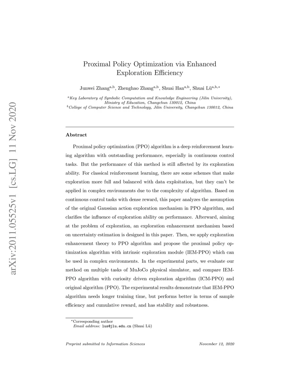Proximal Policy Optimization via Enhanced Exploration Efficiency