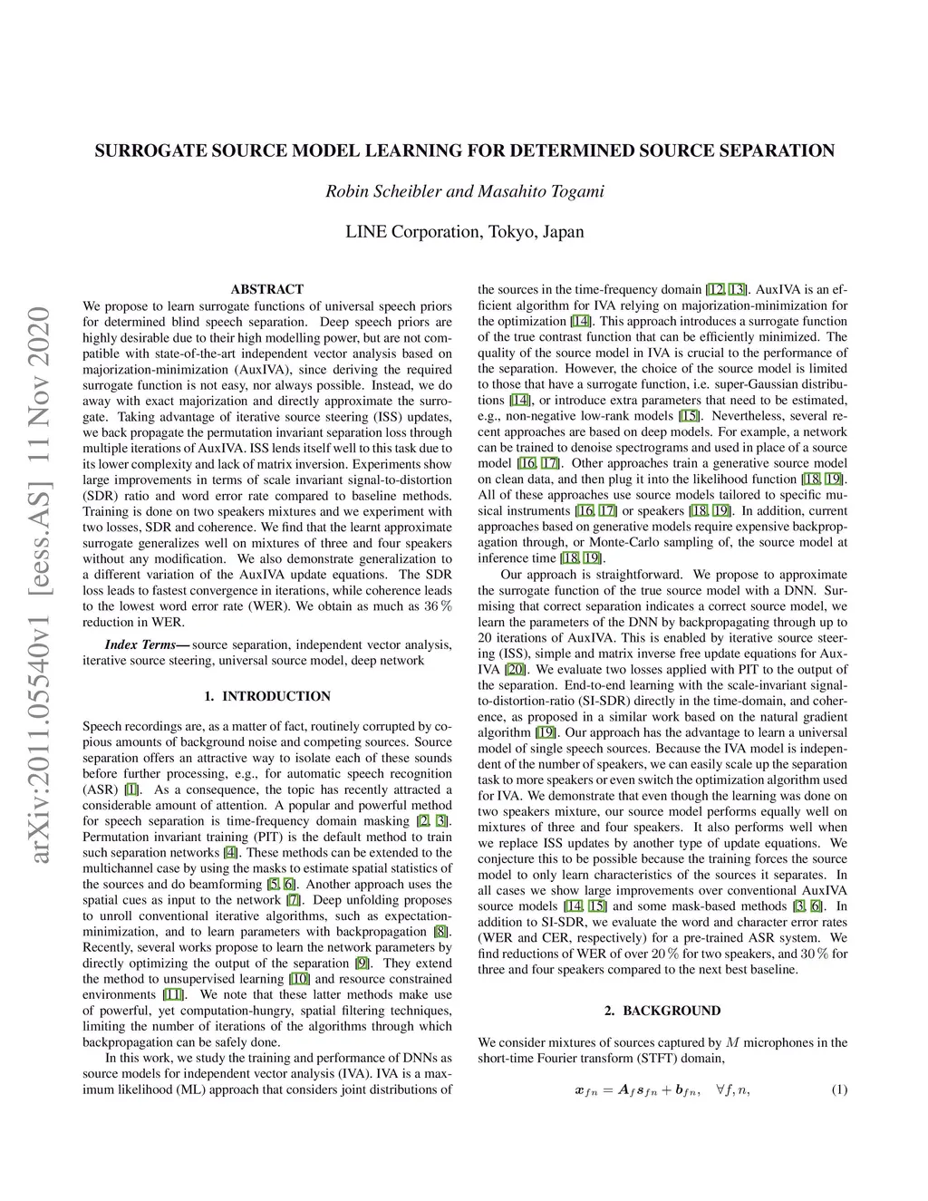 We propose to learn surrogate functions of universal speech priors for determined blind speech separation. Deep speech priors are highly desirable due to their high modelling power, but are not compatible with state-of-the-art independent vector analysis based on majorization-minimization (AuxIVA), since deriving the required surrogate function is not easy, nor always possible. Instead, we do away with exact majorization and directly approximate the surrogate. Taking advantage of iterative source steering (ISS) updates, we back propagate the permutation invariant separation loss through multiple iterations of AuxIVA. ISS lends itself well to this task due to its lower complexity and lack of matrix inversion. Experiments show large improvements in terms of scale invariant signal-to-distortion (SDR) ratio and word error rate compared to baseline methods. Training is done on two speakers mixtures and we experiment with two losses, SDR and coherence. We find that the learnt approximate surrogate generalizes well on mixtures of three and four speakers without any modification. We also demonstrate generalization to a different variation of the AuxIVA update equations. The SDR loss leads to fastest convergence in iterations, while coherence leads to the lowest word error rate (WER). We obtain as much as 36 % reduction in WER.