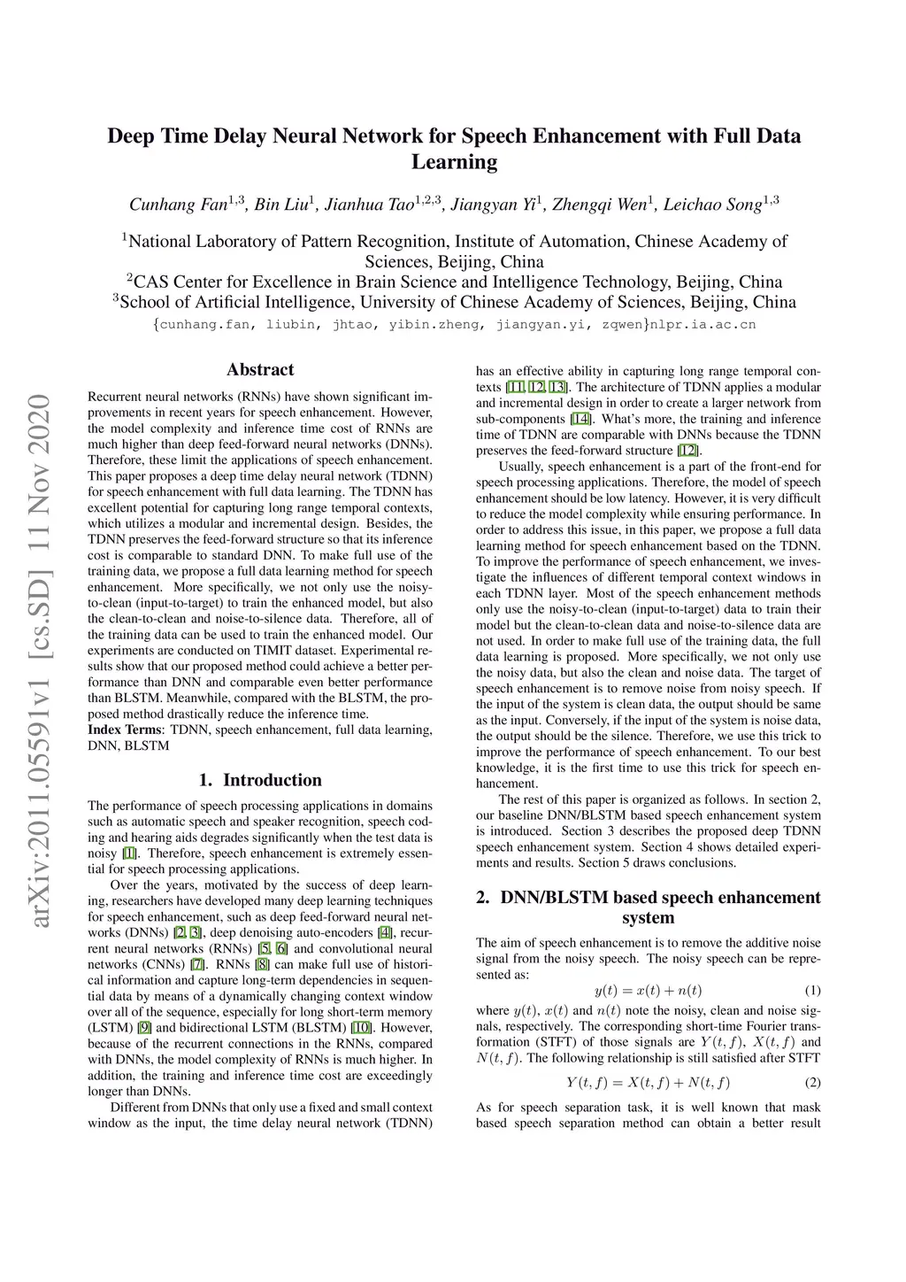 Deep Time Delay Neural Network for Speech Enhancement with Full Data