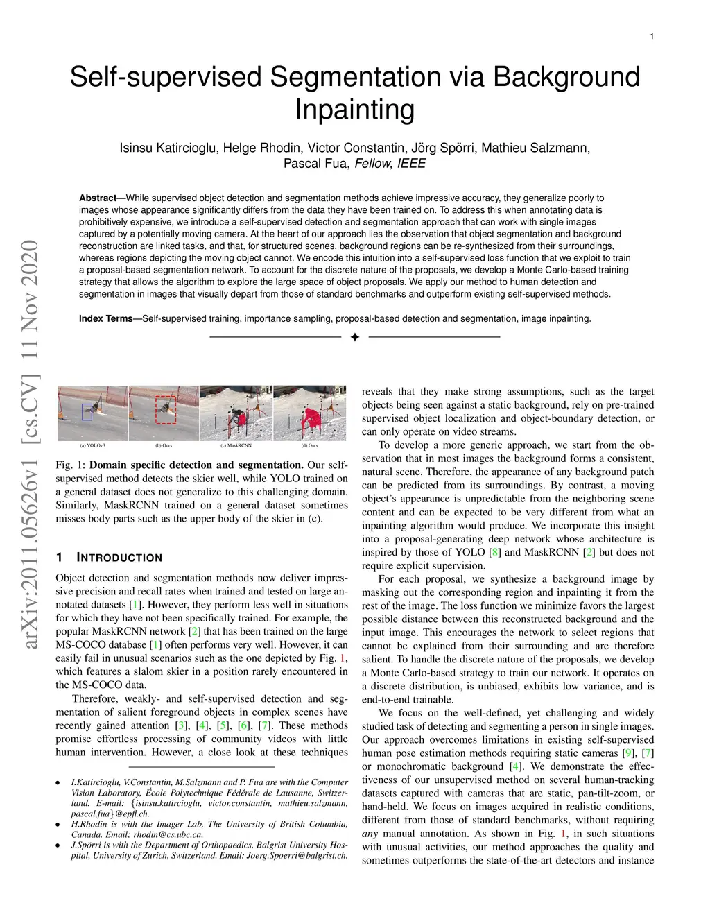 Self-supervised Segmentation via Background Inpainting
