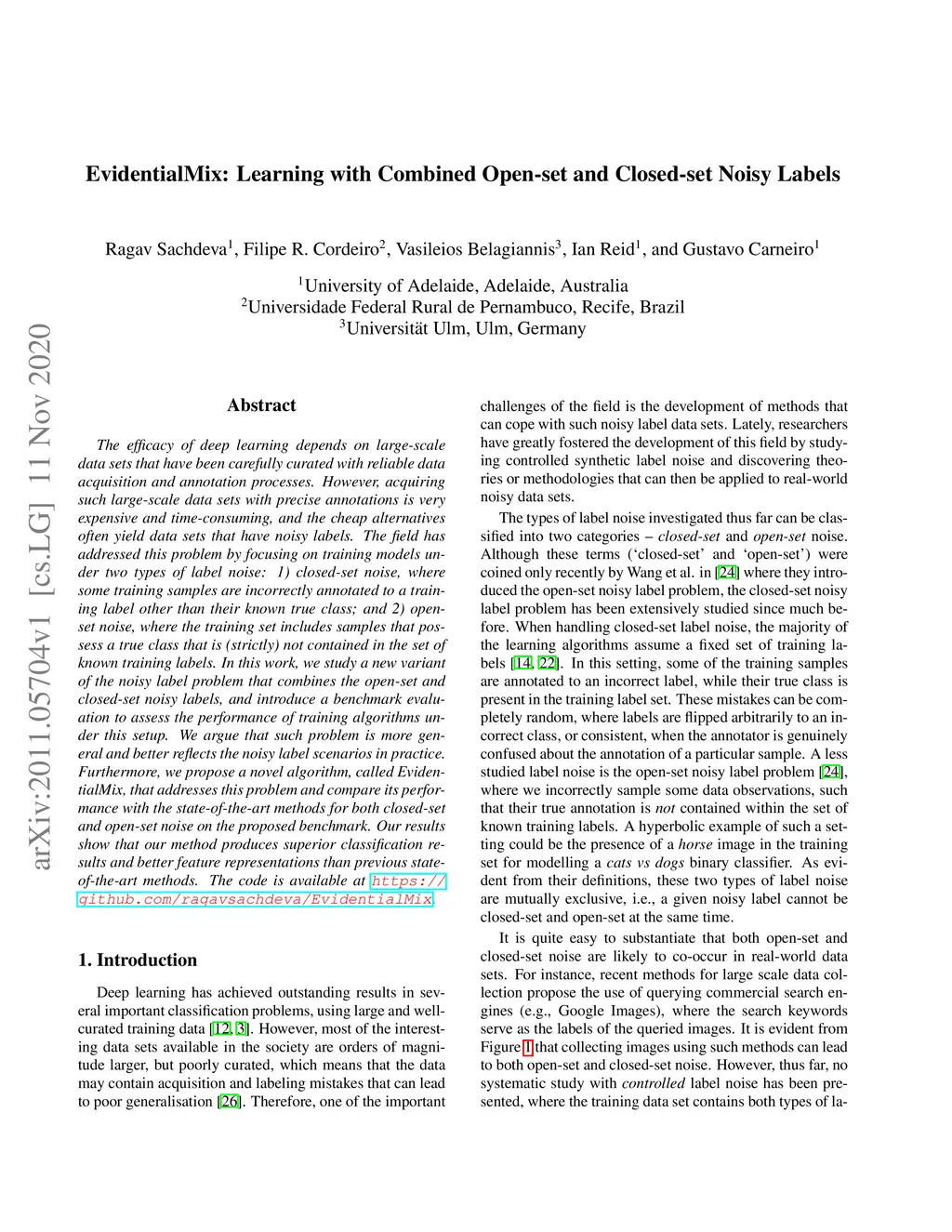 The efficacy of deep learning depends on large-scale data sets that have been carefully curated with reliable data acquisition and annotation processes. However, acquiring such large-scale data sets with precise annotations is very expensive and time-consuming, and the cheap alternatives often yield data sets that have noisy labels. The field has addressed this problem by focusing on training models under two types of label noise: 1) closed-set noise, where some training samples are incorrectly annotated to a training label other than their known true class; and 2) open-set noise, where the training set includes samples that possess a true class that is (strictly) not contained in the set of known training labels. In this work, we study a new variant of the noisy label problem that combines the open-set and closed-set noisy labels, and introduce a benchmark evaluation to assess the performance of training algorithms under this setup. We argue that such problem is more general and better reflects the noisy label scenarios in practice. Furthermore, we propose a novel algorithm, called EvidentialMix, that addresses this problem and compare its performance with the state-of-the-art methods for both closed-set and open-set noise on the proposed benchmark. Our results show that our method produces superior classification results and better feature representations than previous state-of-the-art methods. The code is available at https://github.com/ragavsachdeva/EvidentialMix.