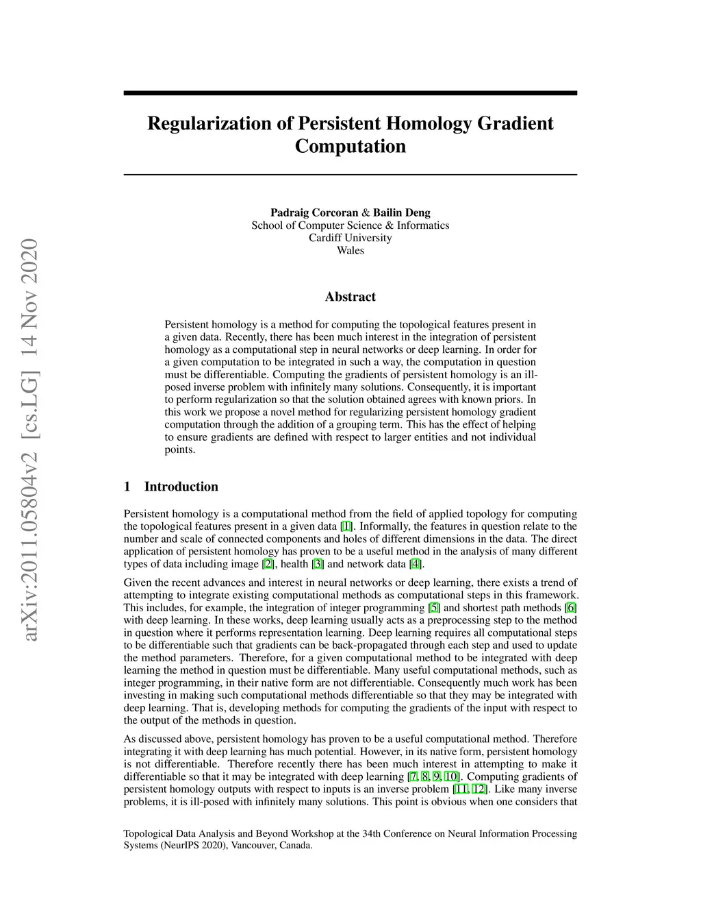 Persistent homology is a method for computing the topological features present in a given data. Recently, there has been much interest in the integration of persistent homology as a computational step in neural networks or deep learning. In order for a given computation to be integrated in such a way, the computation in question must be differentiable. Computing the gradients of persistent homology is an ill-posed inverse problem with infinitely many solutions. Consequently, it is important to perform regularization so that the solution obtained agrees with known priors. In this work we propose a novel method for regularizing persistent homology gradient computation through the addition of a grouping term. This has the effect of helping to ensure gradients are defined with respect to larger entities and not individual points.