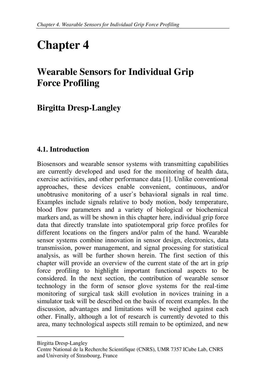 Biosensors and wearable sensor systems with transmitting capabilities are currently developed and used for the monitoring of health data, exercise activities, and other performance data. Unlike conventional approaches, these devices enable convenient, continuous, and/or unobtrusive monitoring of user behavioral signals in real time. Examples include signals relative to body motion, body temperature, blood flow parameters and a variety of biological or biochemical markers and, as will be shown in this chapter here, individual grip force data that directly translate into spatiotemporal grip force profiles for different locations on the fingers and palm of the hand. Wearable sensor systems combine innovation in sensor design, electronics, data transmission, power management, and signal processing for statistical analysis, as will be further shown herein. The first section of this chapter will provide an overview of the current state of the art in grip force profiling to highlight important functional aspects to be considered. In the next section, the contribution of wearable sensor technology in the form of sensor glove systems for the real-time monitoring of surgical task skill evolution in novices training in a simulator task will be described on the basis of recent examples. In the discussion, advantages and limitations will be weighed against each other.